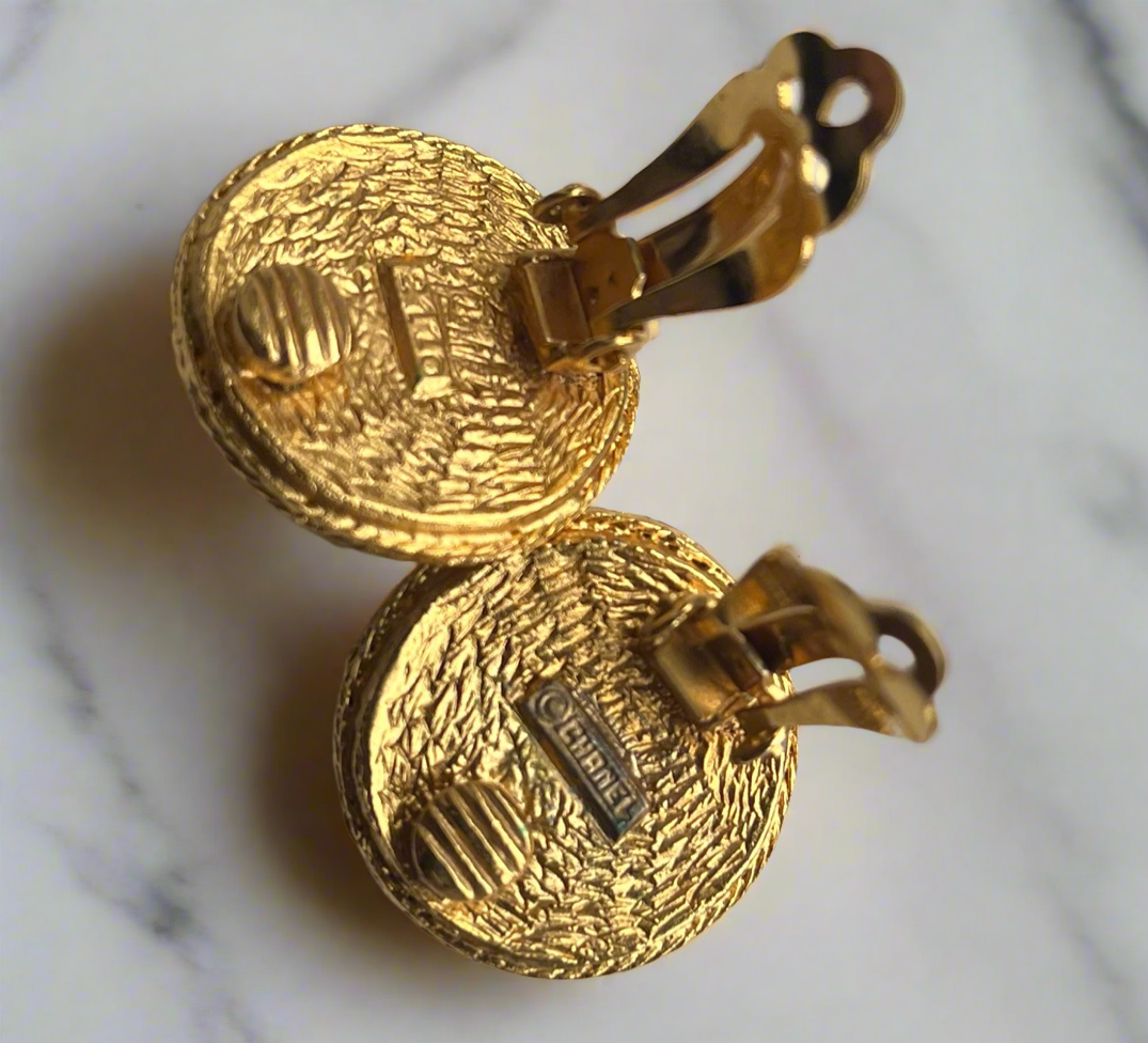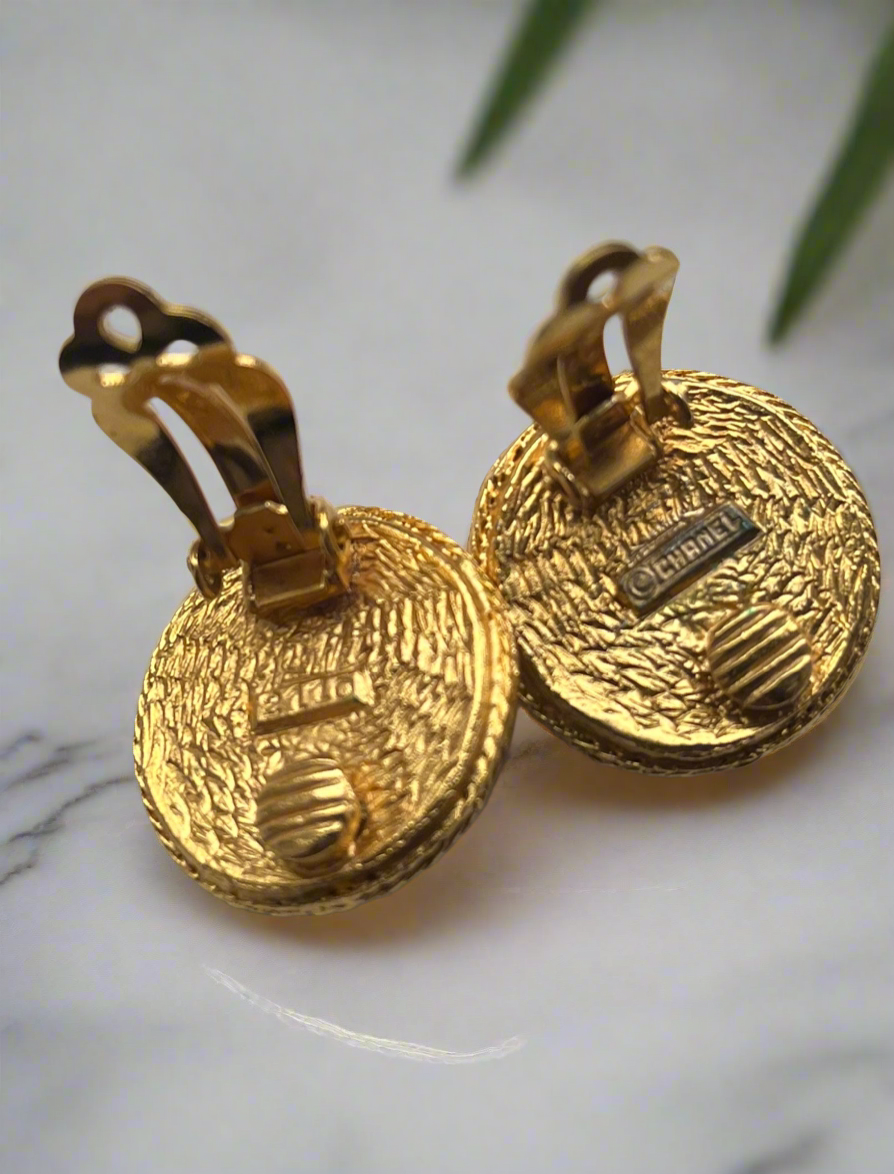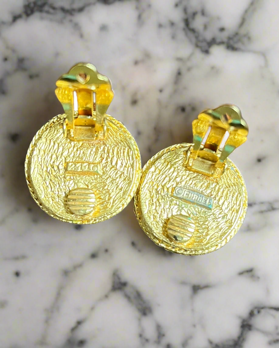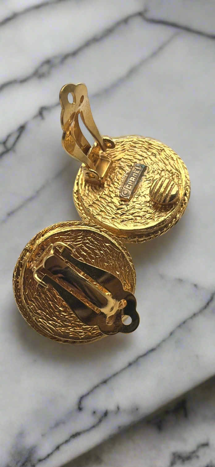 Perfect vintage condition with comfortable clip-on mechanism. This particular baroque design is exceptionally rare, making these earrings a cornerstone piece for any serious vintage Chanel collection.