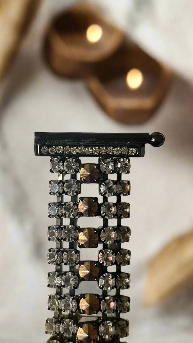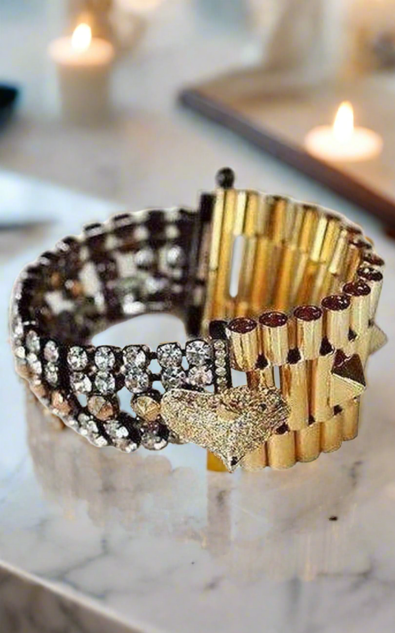 β’ Thick metal and rhinestone band showcasing Italian craftsmanship