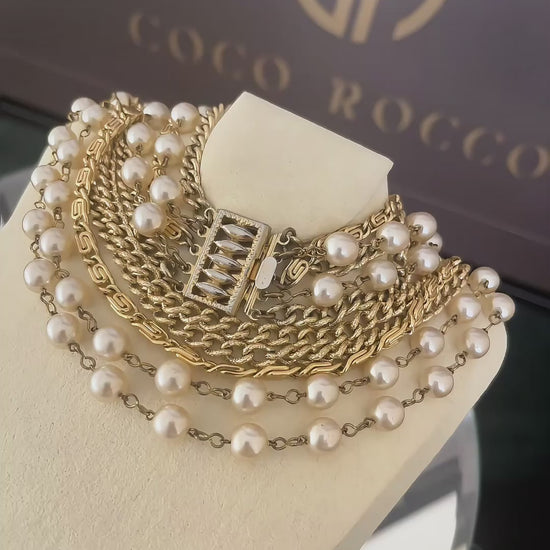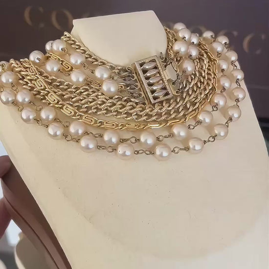 🏛️ DESIGNER HERITAGE: 1950s Giuliano Fratti Multi-Strand Pearl & Gold Necklace